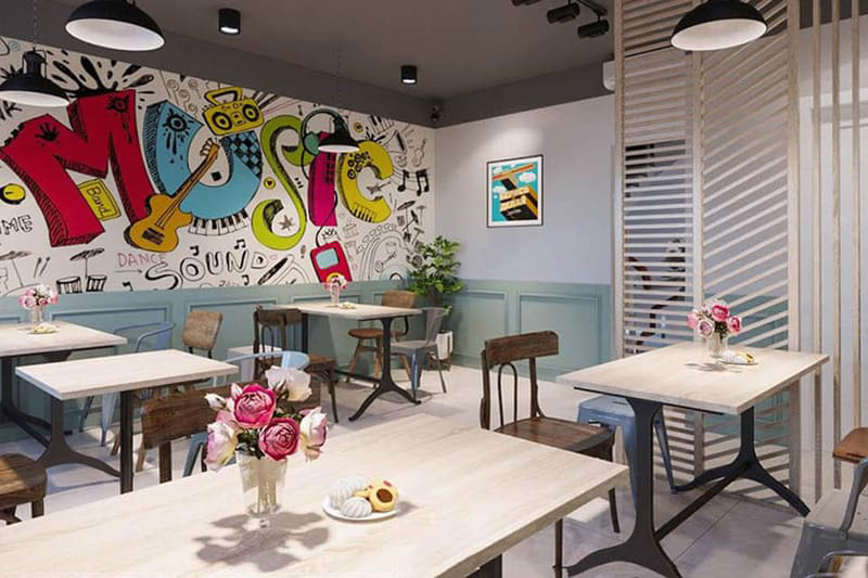 Màu sắc là yếu tố quan trọng giúp tạo ấn tượng cho khách hàng ngay từ khi bước vào quán. Bạn nên chọn những màu sắc tươi sáng, trẻ trung và phù hợp với phong cách thiết kế của quán.
